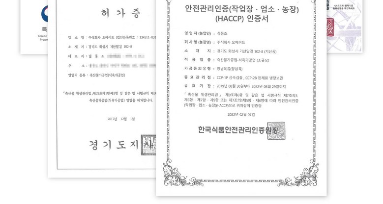 상호/대표자 | 주식회사 오메이드 / 김동조 | 사업장 소재지 | 경기도 화성시 기산말길 102-8 1층 |