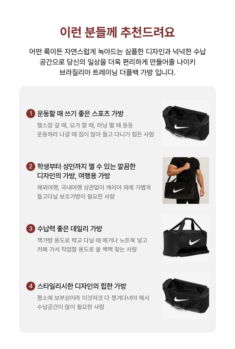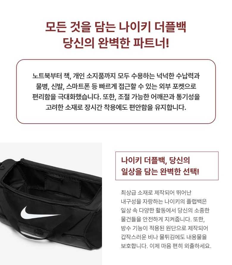 | 종류 | 나이키 더플백 | 소재 | 폴리에스터 |