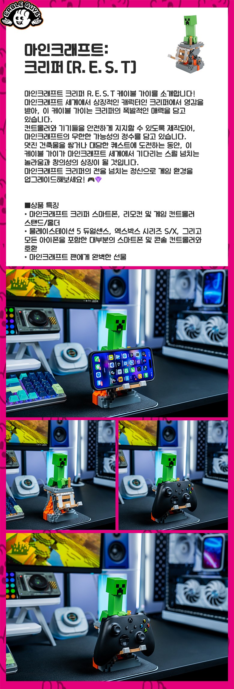 케이블 가이즈 마인크래프트 크리퍼 R.E.S.T. 컨트롤러 휴대폰 홀더