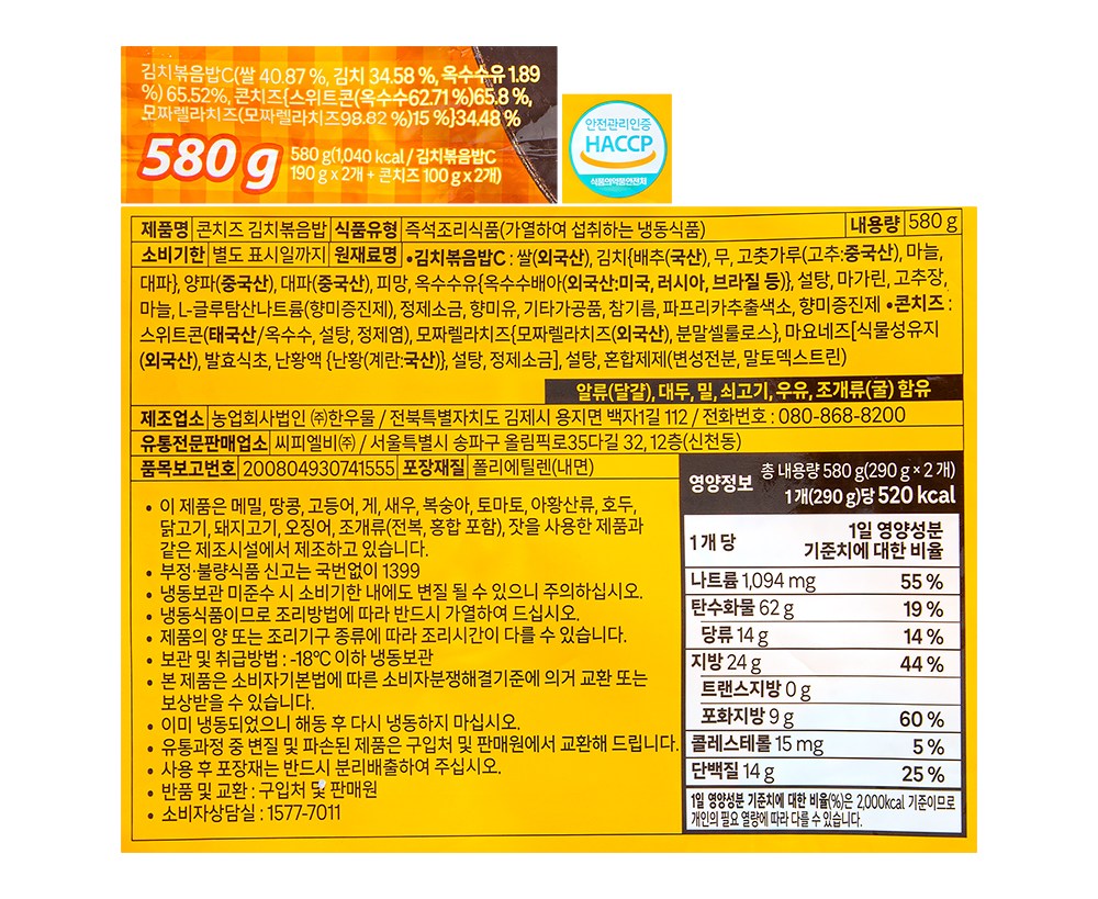 | 포장단위별 내용물의 용량(중량), 수량 | 580g, 1개 | 원재료명 및 함량 | 컨텐츠 참조 |