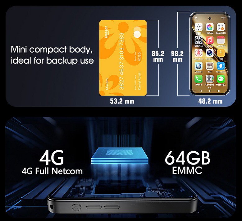 AIEK Q333 4GB RAM 64GB ROM 안드로이드 12.0 스마트폰 2000mAh Face ID 4G LTE 타입-C OTG 3.58인치 화면 소형폰