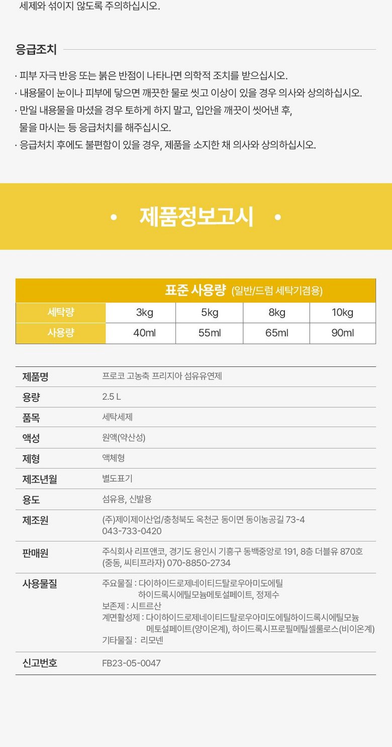 | 품목 및 제품명 | 상품 상세페이지 참조 | 용도(표백제의 경우 계열을 함께표시) 및 제형 | 상품 상세페이지 참조 |