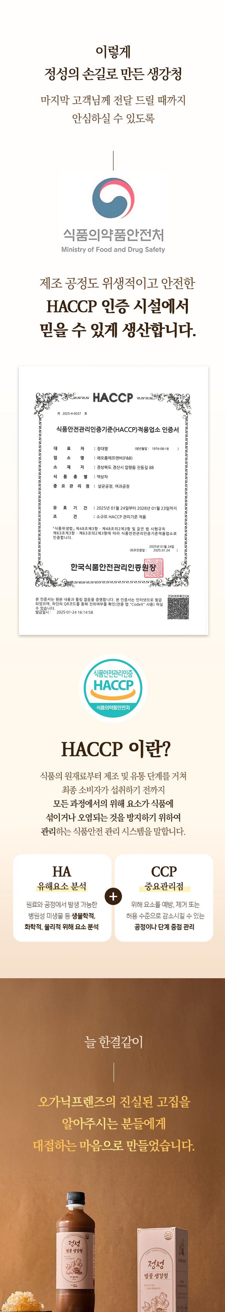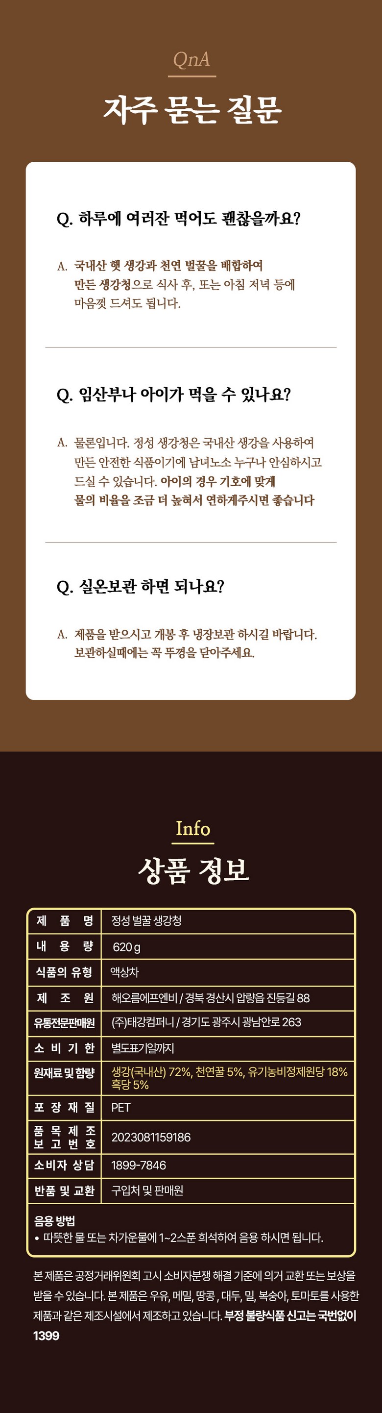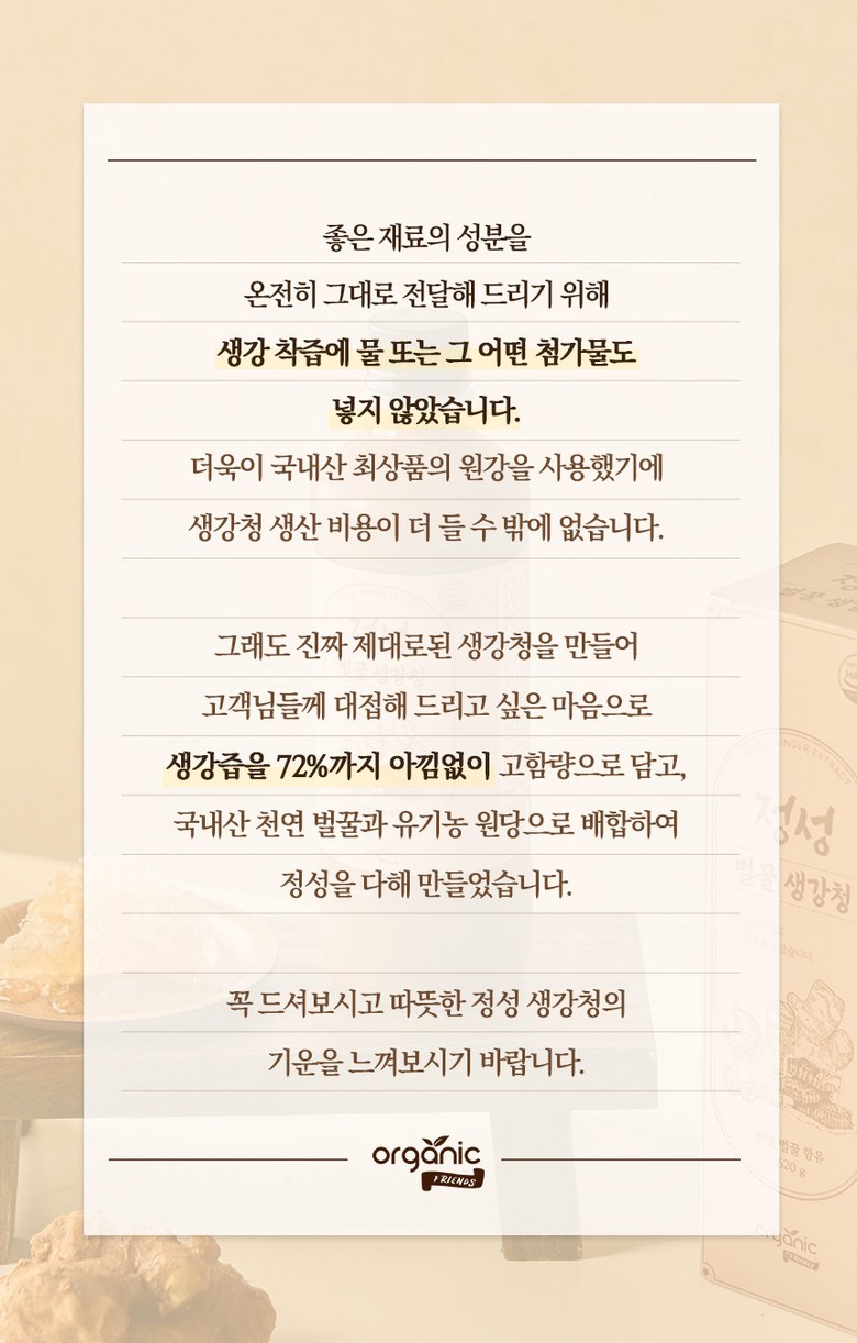 | 제품명 | 정성 벌꿀 생강차 | 식품의 유형 | 액상차 |