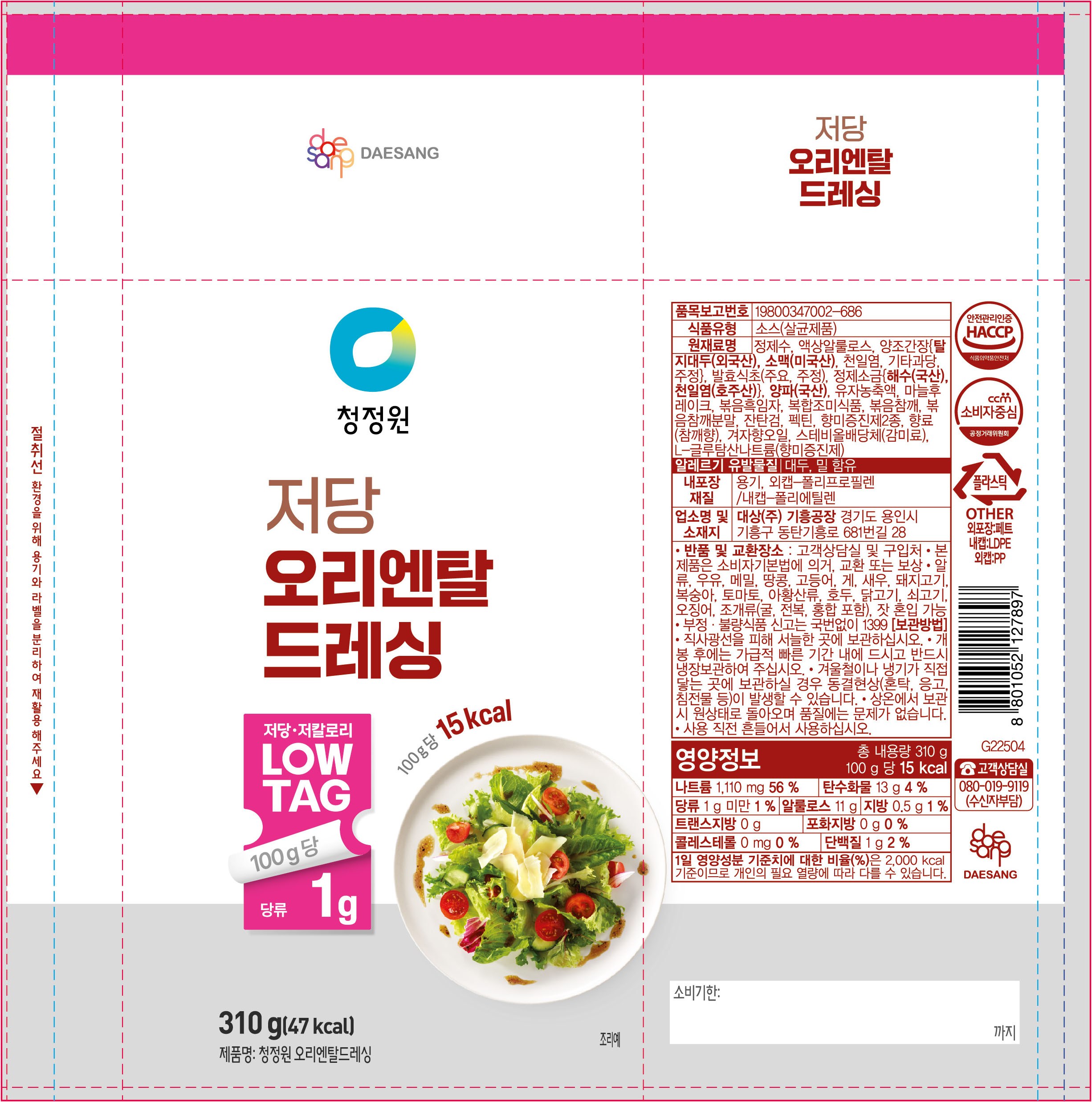 | 제품명 | 청정원 오리엔탈드레싱 | 식품의 유형 | 컨텐츠 참조 |