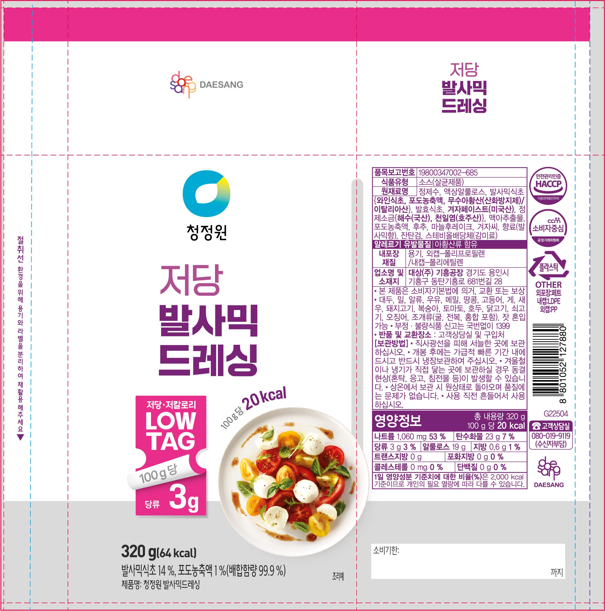 | 제품명 | 청정원 발사믹드레싱 | 식품의 유형 | 컨텐츠 참조 |