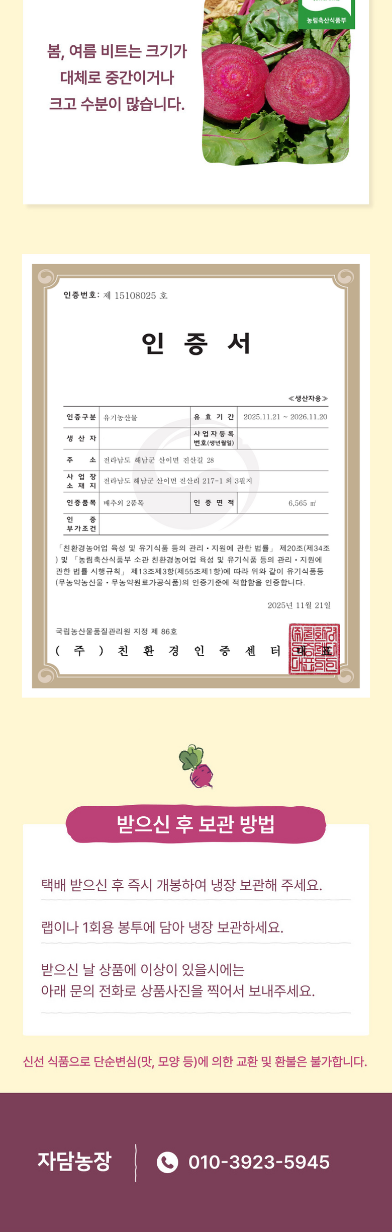 상호/대표자 | 자담농장 / 문채원 | 사업장 소재지 | 전라남도 해남군 산이면 진산길 28 - |