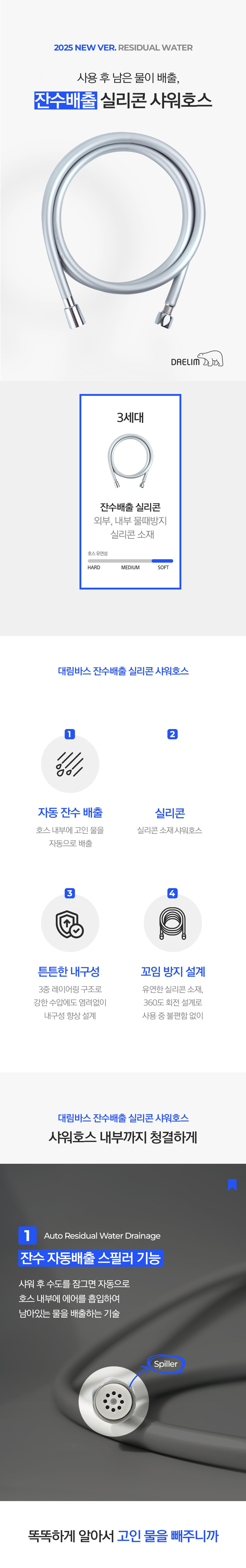 | 품명 및 모델명 | 대림바스 잔수배출 실리콘 샤워호스 | 인증/허가 사항 | 해당없음 |