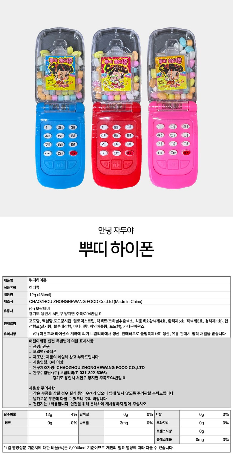 | 제품명 | 상품 상세페이지 참조 | 식품의 유형 | 상품 상세페이지 참조 |