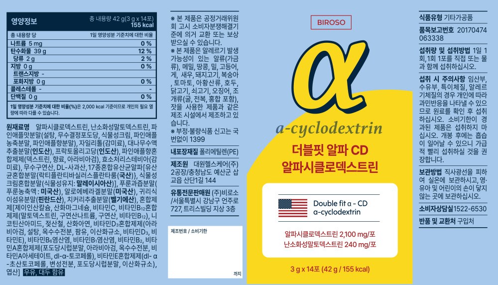 | 포장단위별 내용물의 용량(중량), 수량 | 42g, 1개 | 원재료명 및 함량 | 컨텐츠 참조 |
