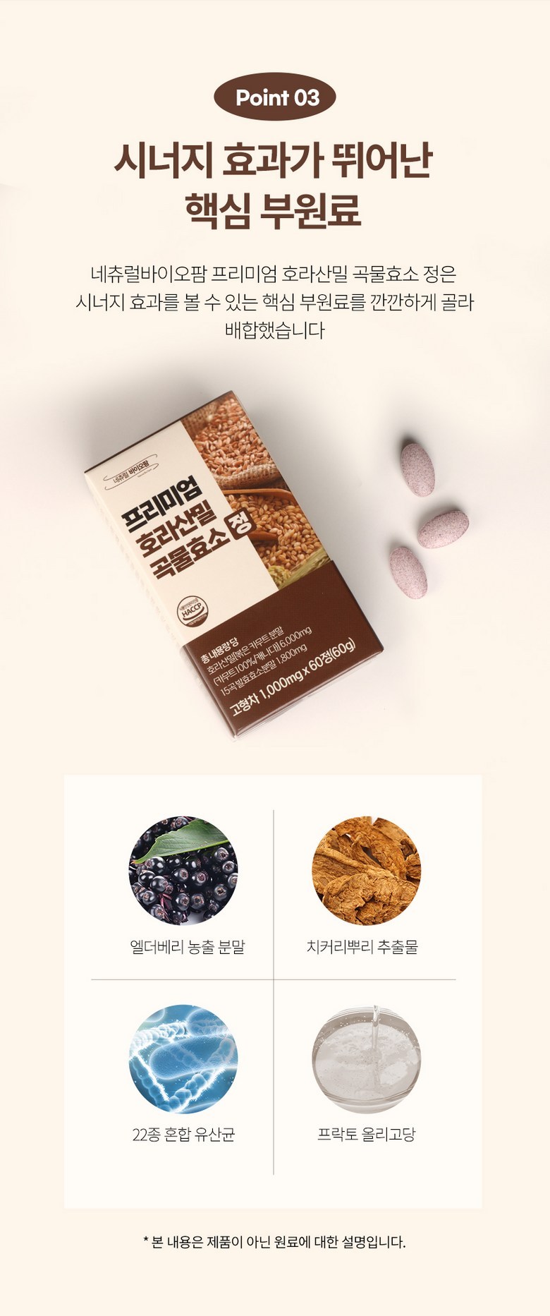 | 포장단위별 내용물의 용량(중량), 수량 | 60g, 60정 | 원재료명 및 함량 | 제품내 표시 |