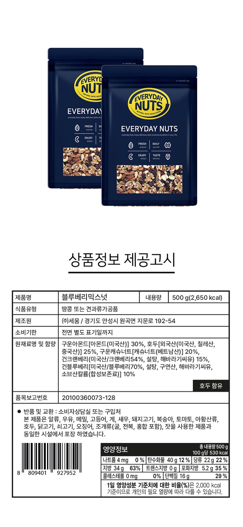 | 제조연월일, 소비기한 또는 품질유지기한 | 상품 상세페이지 참조 | 세부 품목군별 표시사항 | 상품 상세페이지 참조 |
