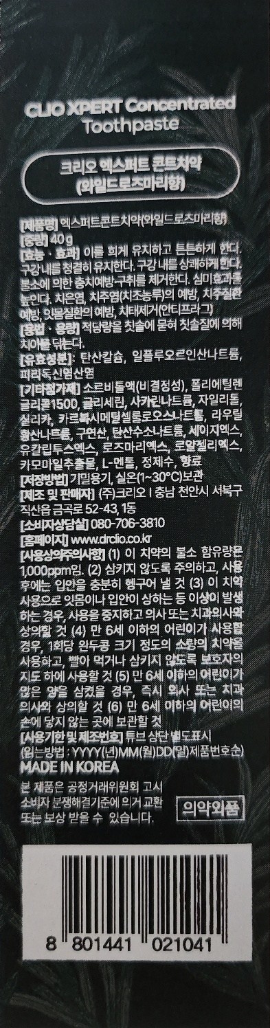 | 품명 및 모델명 | 엑스퍼트콘트치약(와일드로즈마리향) | 인증/허가 사항 | 의약외품 |