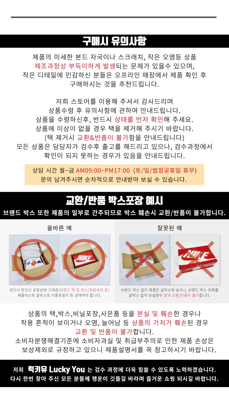 - ㆍ교환/반품에 관한 일반적인 사항은 판매자가 제시사항보다 관계법령이 우선합니다.