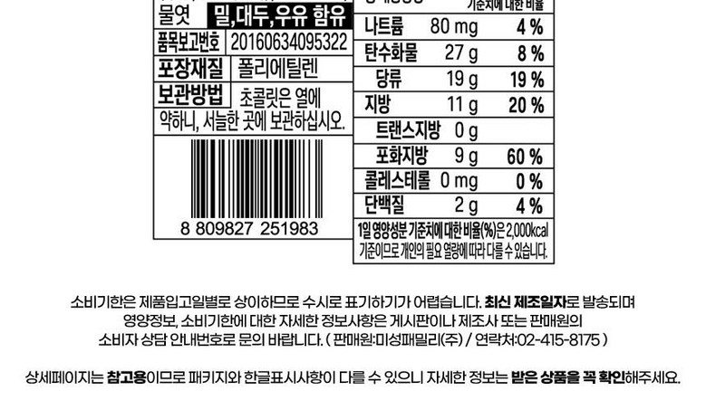 | 생산자 및 소재지 | 상품 상세페이지 참조 | 제조연월일, 소비기한 또는 품질유지기한 | 상품 상세페이지 참조 |