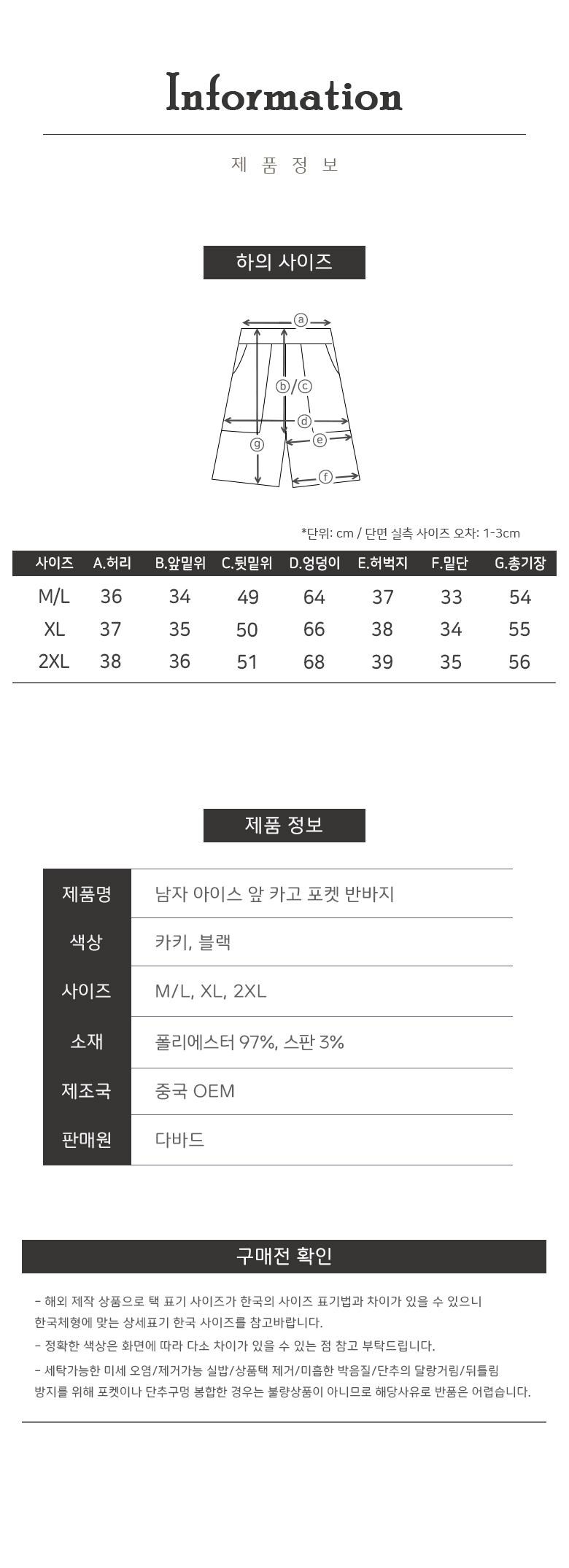 | 제품 소재 | 폴리에스터97%스판3% | 색상 | 블랙,카키 |