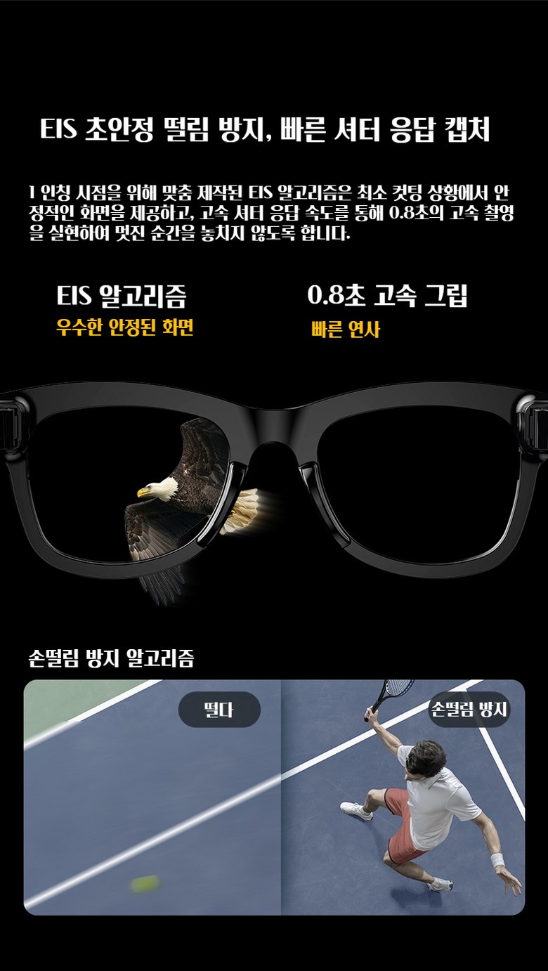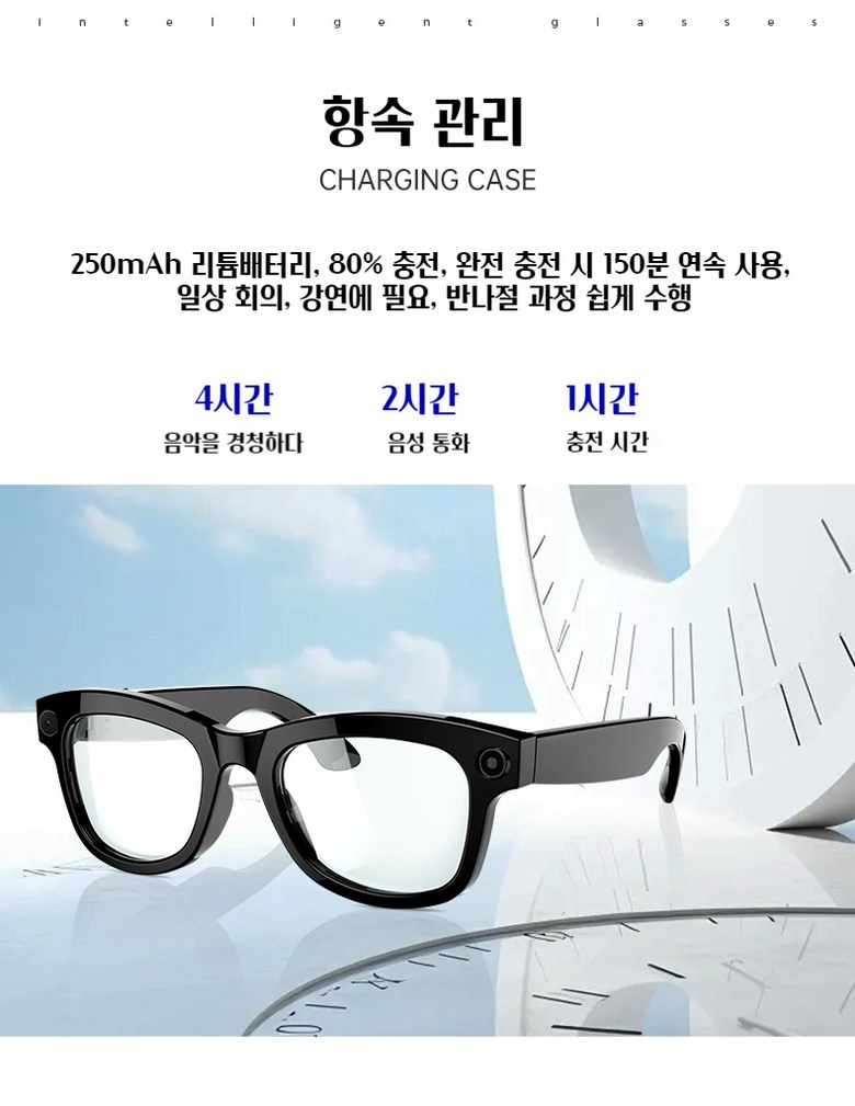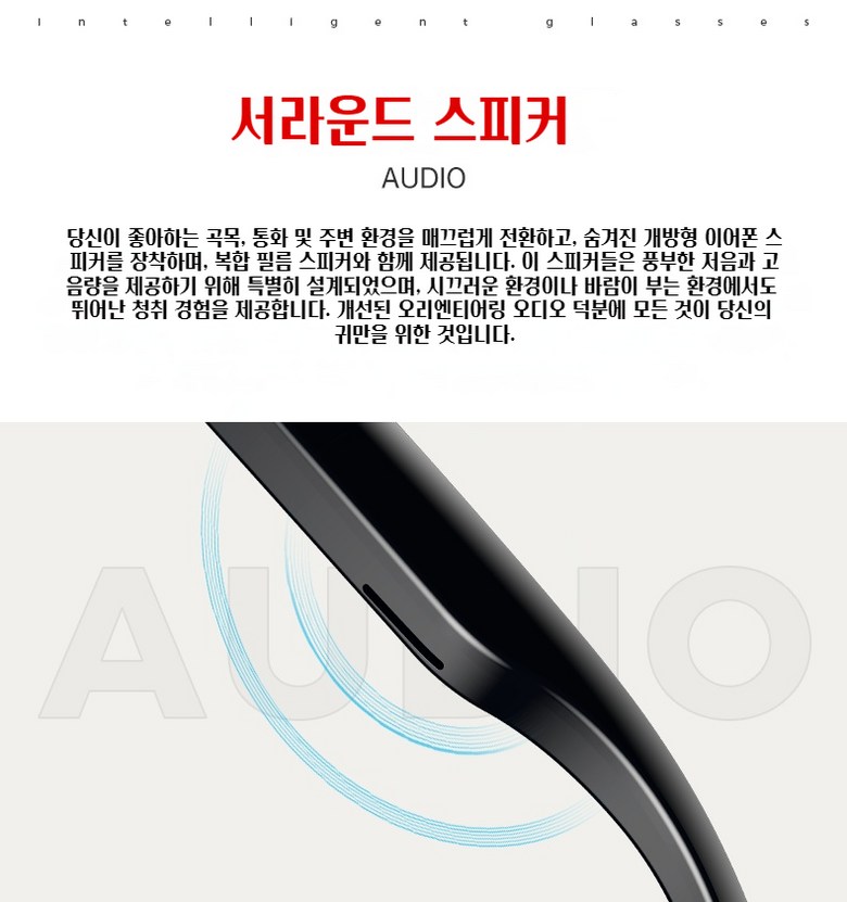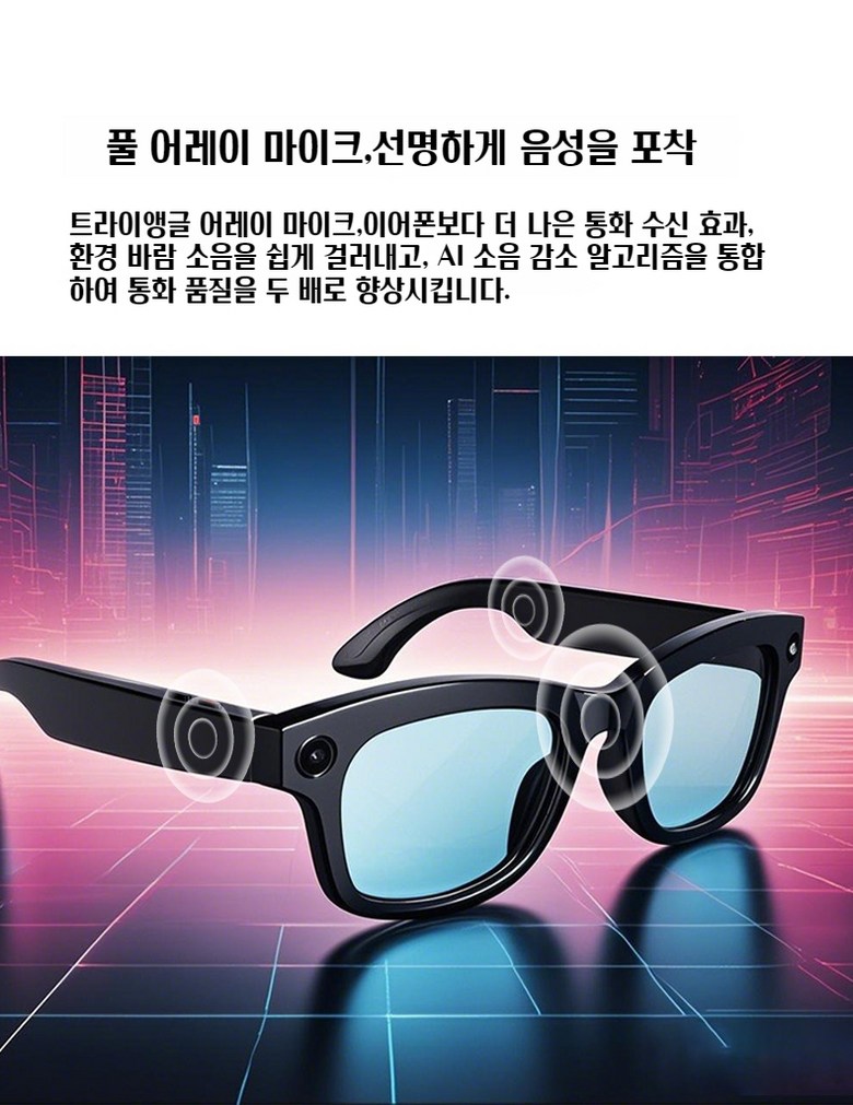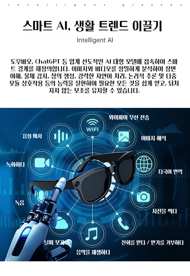 신형 블루투스 AI 촬영 안경 블루투스 통화 음성 도우미 실시간 번역 500만 화소 촬영 안정
