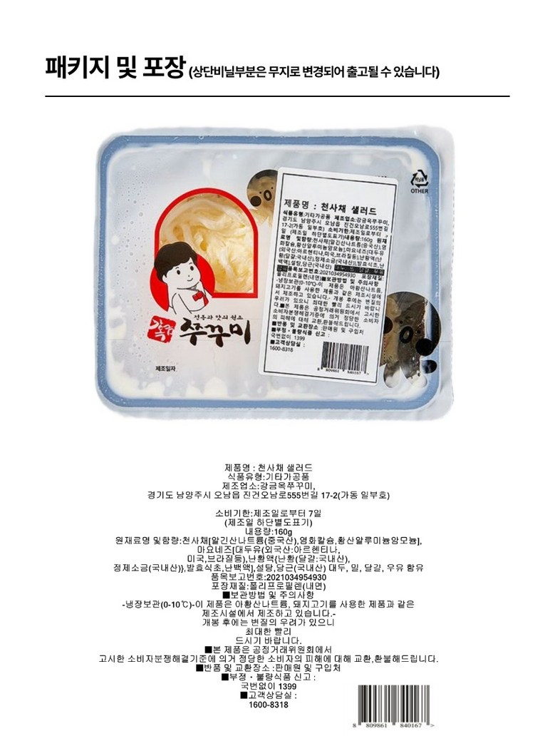 | 생산자 및 소재지 | 상품 상세페이지 참조 | 제조연월일, 소비기한 또는 품질유지기한 | 상품 상세페이지 참조 |