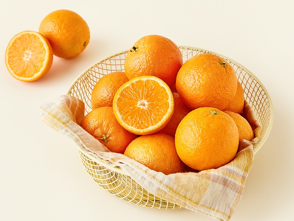 귤 같기도, 오렌지 같기도 한 이 과일은 만다린이에요. 진한 단맛과 싱그러운 향이 특징이죠. 껍질이 쉽게 벗겨지니, 톡 까서 드셔보세요. 입안을 적시는 촉촉한 과즙과 부드러운 식감에 자꾸 손이 갈 거예요. 주스를 만들어 드셔도 좋지만, 생과 그대로 먹을 때 가장 맛있답니다.
