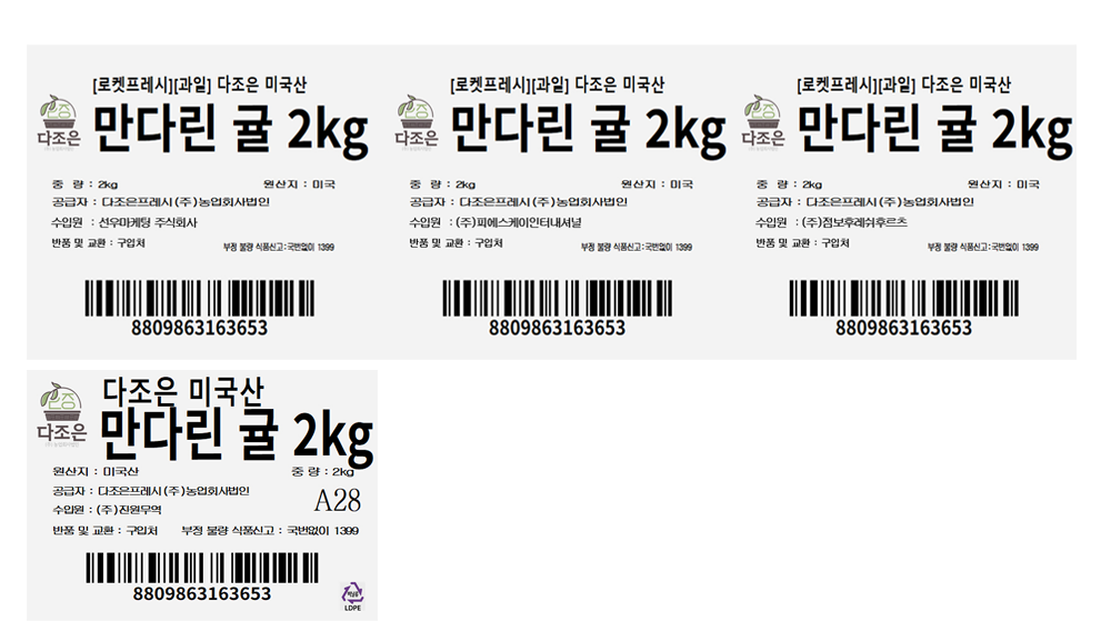 · 수입원이 상이한 상품이 랜덤으로 발송됩니다. 엄격하고 동일한 품질 기준에 의해 선별된 점 안내 드립니다.