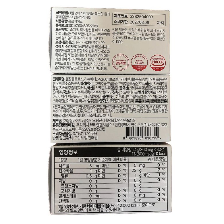| 원재료명 및 함량 | 상품 상세페이지 참조 | 영양성분 | 상품 상세페이지 참조 |