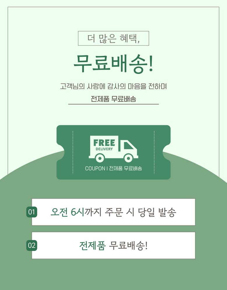 | 배송방법 | 신선/냉장/냉동 | 배송비 | 무료배송 - 도서산간 지역 배송불가 |