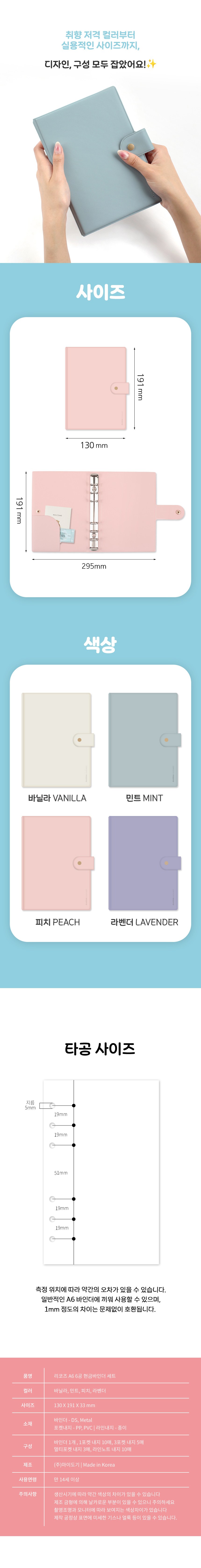 | 품명 및 모델명 | 리코즈 A6 6공 현금바인더 세트, 바닐라 | 인증/허가 사항 | 해당없음(14세이상) |