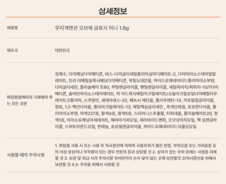 | 화장품제조업자, 화장품책임판매업자 및 맞춤형화장품판매업자 | 상품 상세페이지 참조 | 제조국 | 상품 상세페이지 참조 |