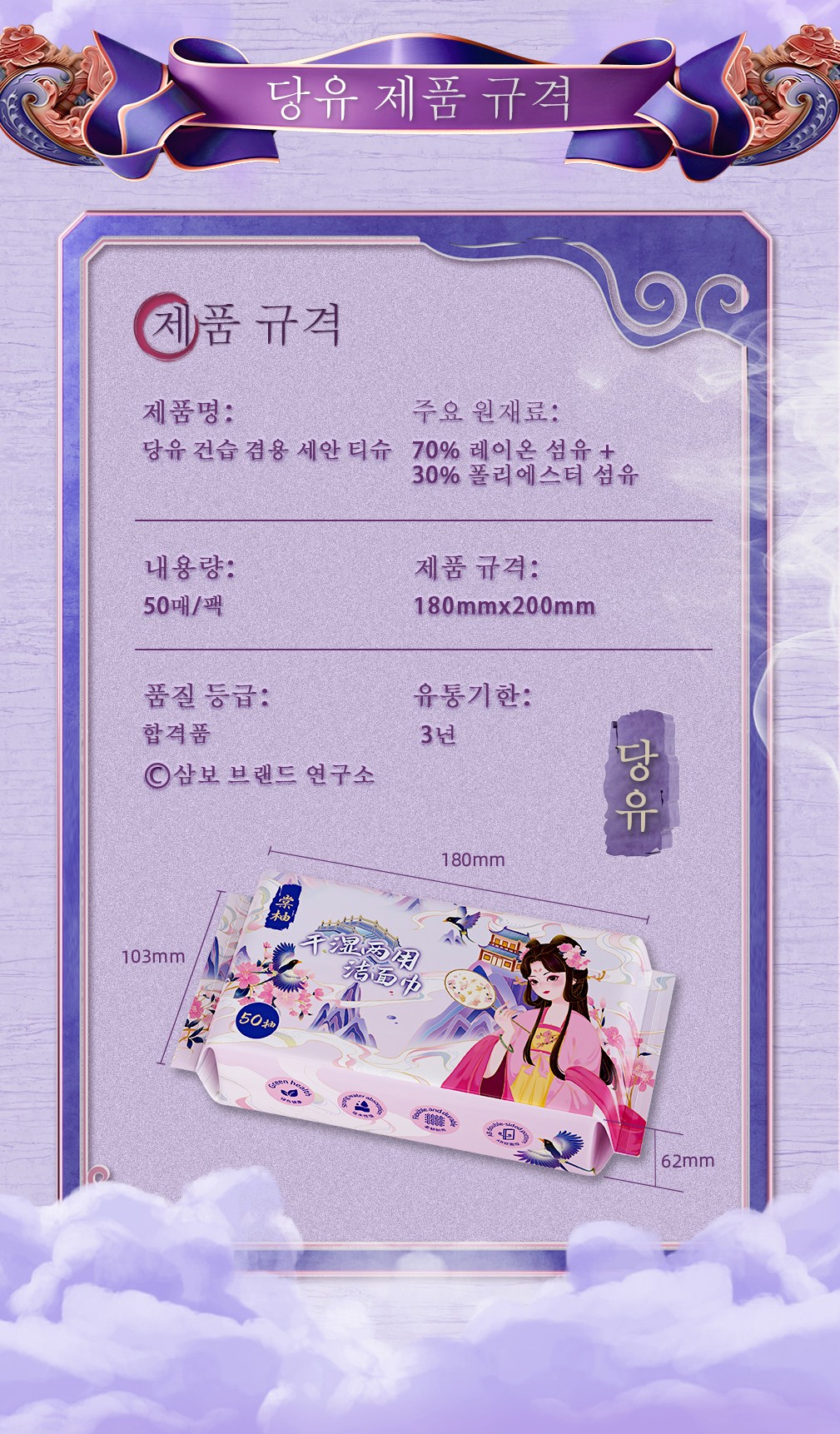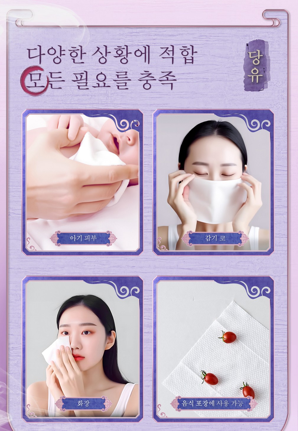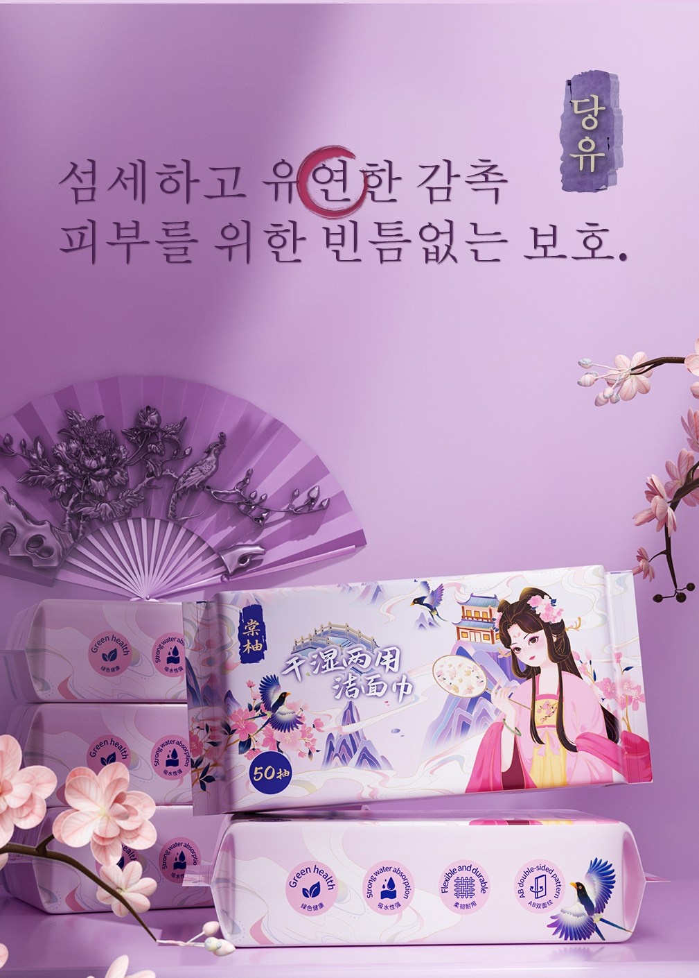 Tang You 주요 제품 라인은 가정 청소 및 위생용품입니다. 자체 공장은 10만 대 규모의 무진공 작업장을 갖추고 있으며, 6개의 완전 자동 생산 라인을 통해 생필품, 물티슈, 모자보건용품, 화장품 등을 자체 개발 및 생산할 수 있습니다. 위생보건을 핵심으로 하는 중국 최고의 일회용품 브랜드로 자리매김하여 총 1천만 가구 이상에 서비스를 제공하고 있습니다.