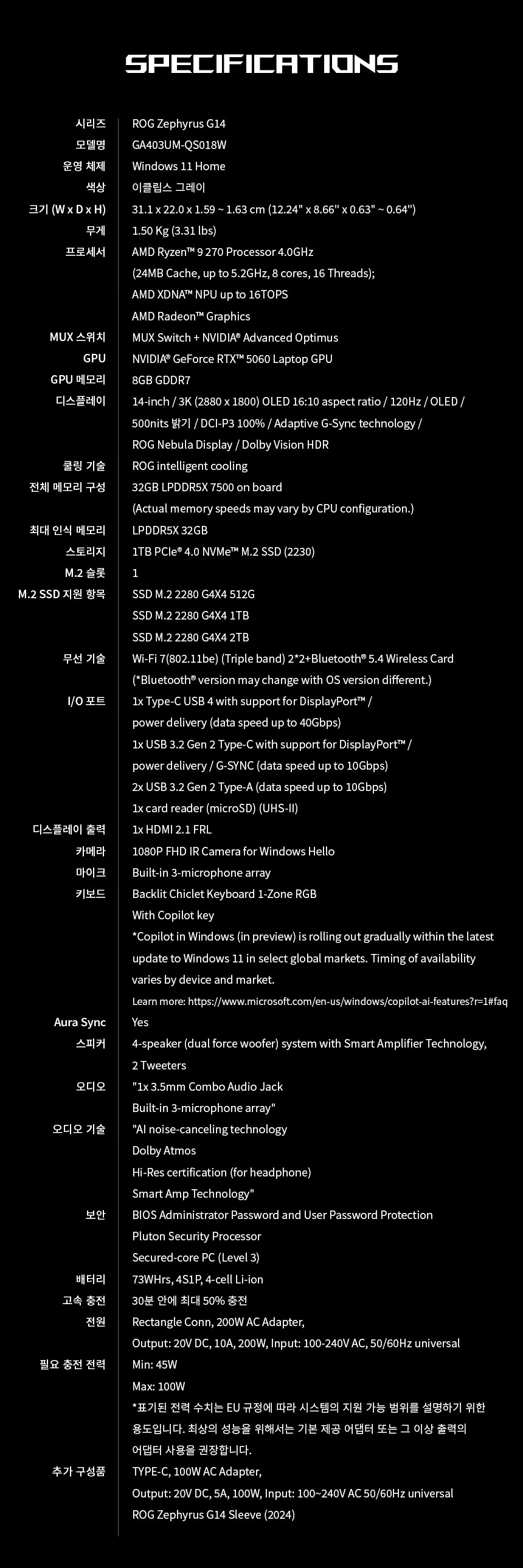 | 출시년월 | 2025년 5월 | 제조자(수입자) | ASUSTEK COMPUTER INC., TECH-FRONT (CHONGQING) COMPUTER CO LTD / 대원씨티에스(주) |