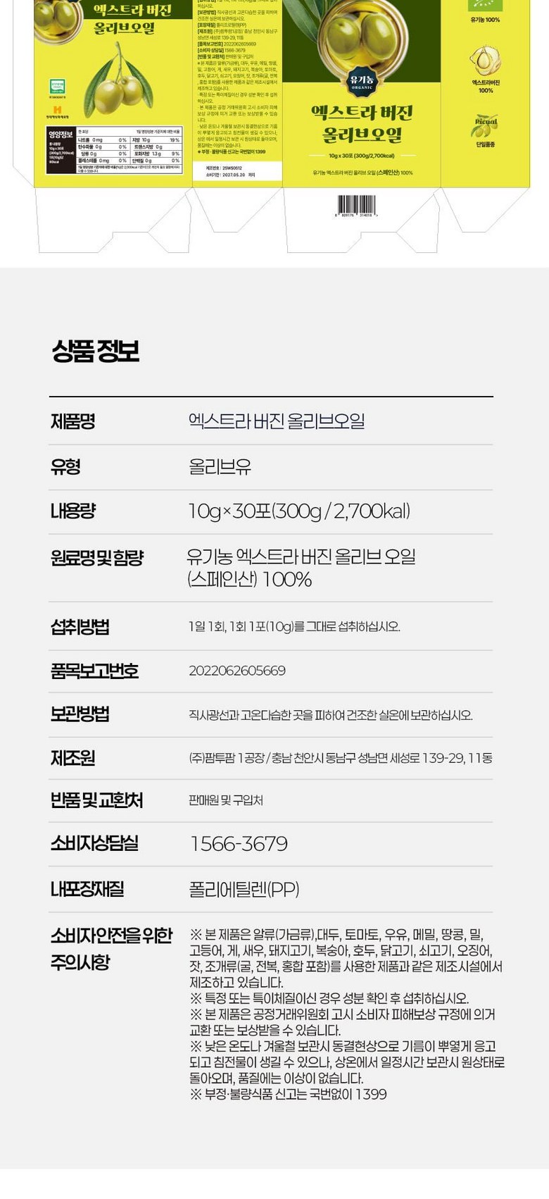 | 생산자 및 소재지 | 상품 상세페이지 참조 | 제조연월일, 소비기한 또는 품질유지기한 | 상품 상세페이지 참조 |