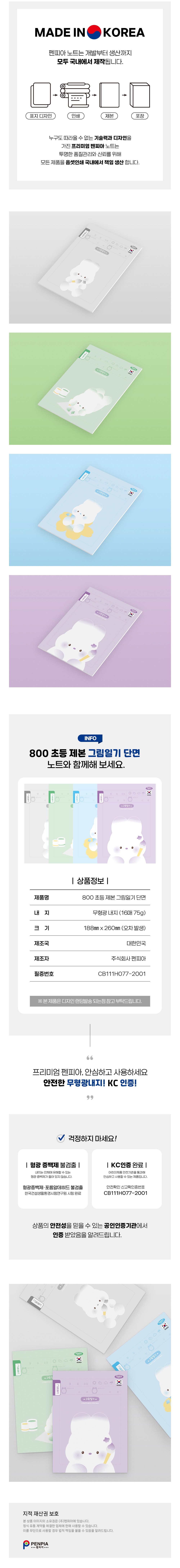 | 품명 및 모델명 | 펜피아 800 초등노트 그림일기(단면) 공용 10개입 (랜덤 발송) | KC 인증정보 | CB111H077-2001 |