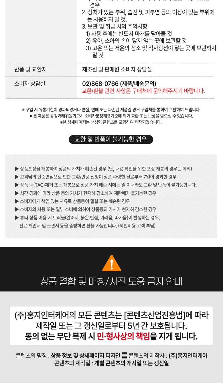 - ㆍ교환/반품에 관한 일반적인 사항은 판매자가 제시사항보다 관계법령이 우선합니다.