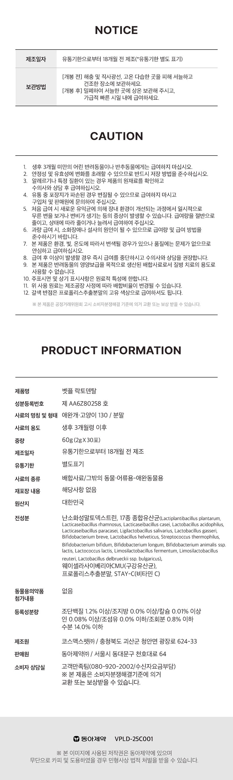 | 품명 및 모델명 | 벳플 락토덴탈 | 인증/허가 사항 | 사료관리법에 따른 성분등록번호 : 컨텐츠 참조 |