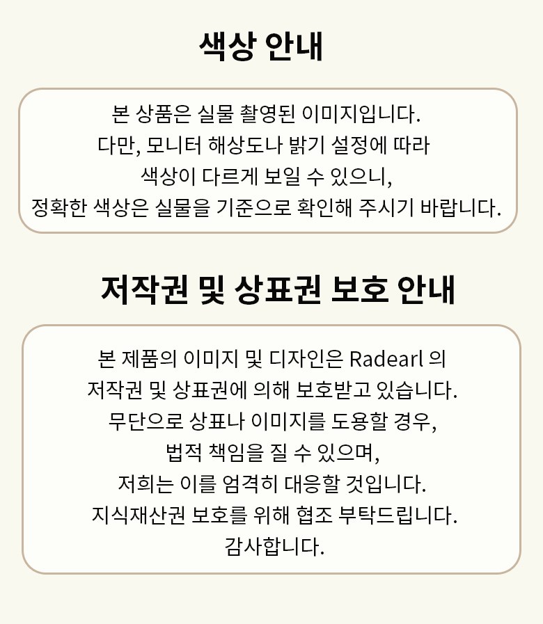 - ㆍ모니터 해상도의 차이로 인해 색상이나 이미지가 실제와 달라, 고객이 단순 변심으로 교환/반품을 무료로 요청하는 경우