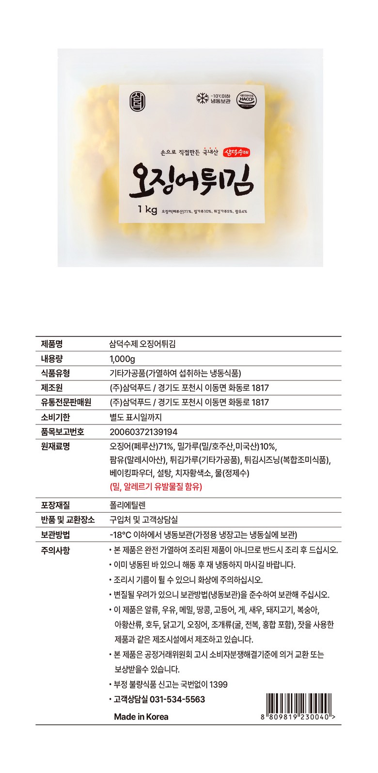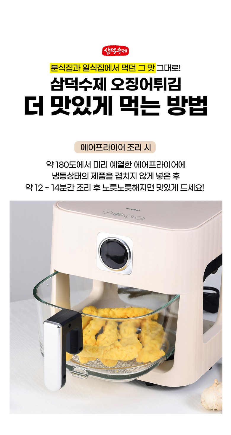 삼덕푸드 오징어튀김은 얇은 튀김옷과 대왕오징어(페루산)를