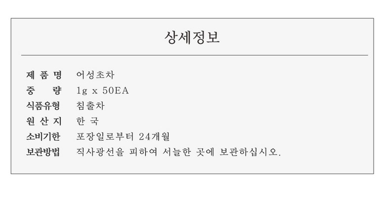 | 제조연월일, 소비기한 또는 품질유지기한 | 상품 상세페이지 참조 | 세부 품목군별 표시사항 | 상품 상세페이지 참조 |
