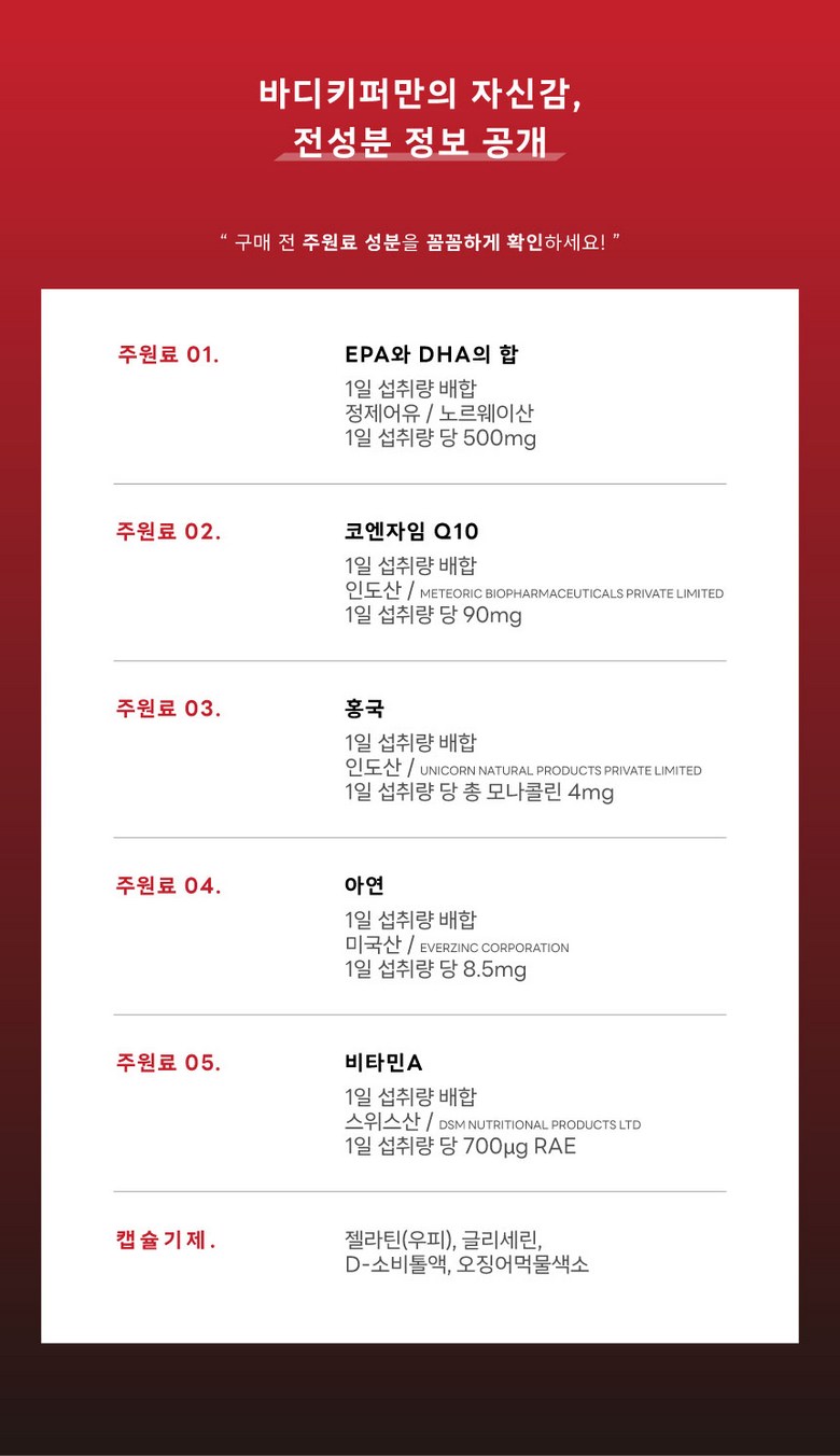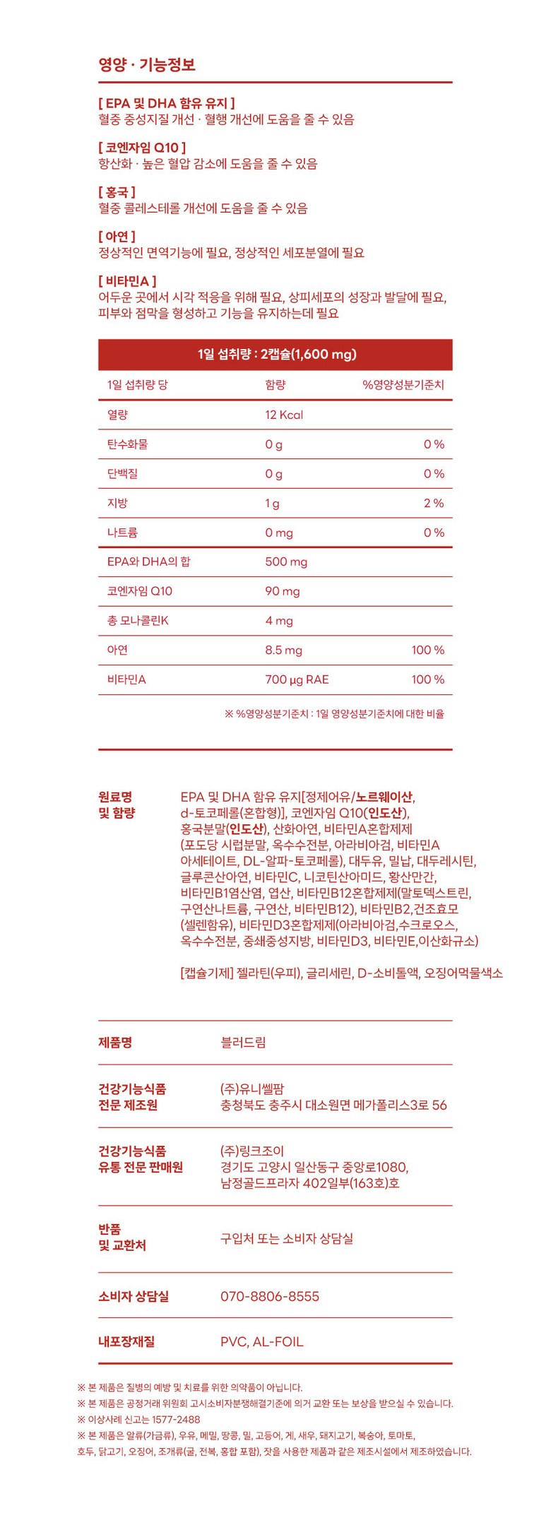 | 원료명 및 함량 | 상품 상세페이지 참조 | 영양정보 | 상품 상세페이지 참조 |