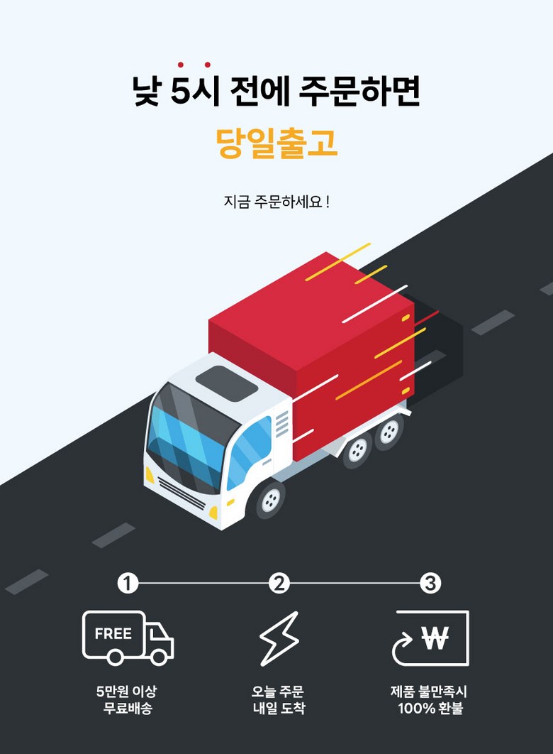 | 배송기간 | ㆍ도서산간 지역 등은 배송에 3-5일이 더 소요될 수 있습니다. - 천재지변, 물량 수급 변동 등 예외적인 사유 발생 시, 다소 지연될 수 있는 점 양해 부탁드립니다. | ||