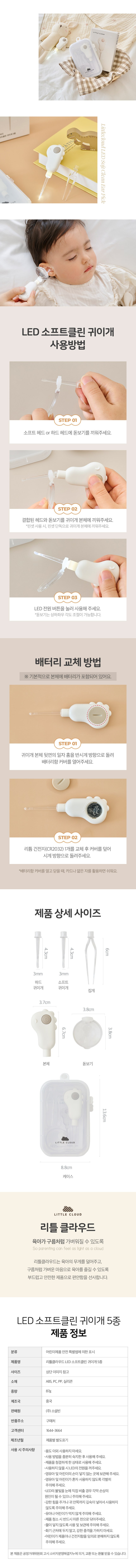 | 품명 및 모델명 | 리틀클라우드 LED 소프트클린 귀이개 5종 | 인증/허가 사항 | 해당없음 |
