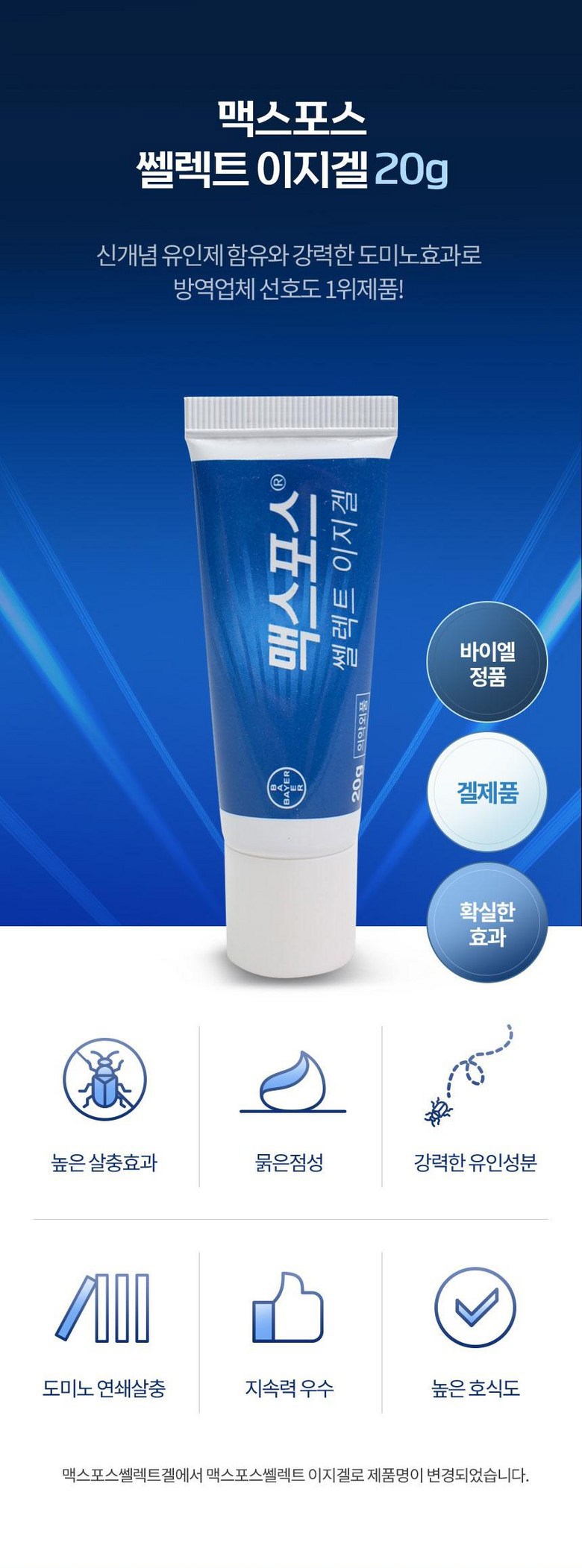 | 품목 및 제품명 | 맥스포스 쏄렉트이지겔20g | 유통기한 | 유통기한 : 2026년 07월 16일 이거나 그 이후인 상품 |
