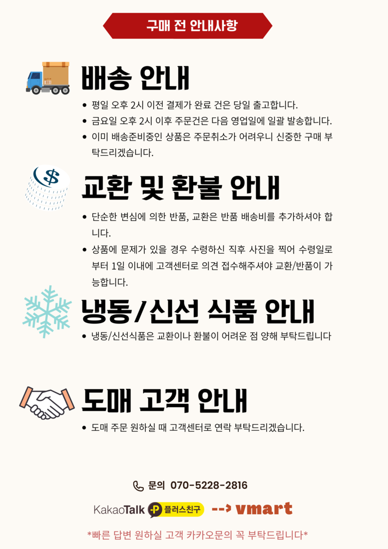 - ㆍ교환/반품에 관한 일반적인 사항은 판매자가 제시사항보다 관계법령이 우선합니다.