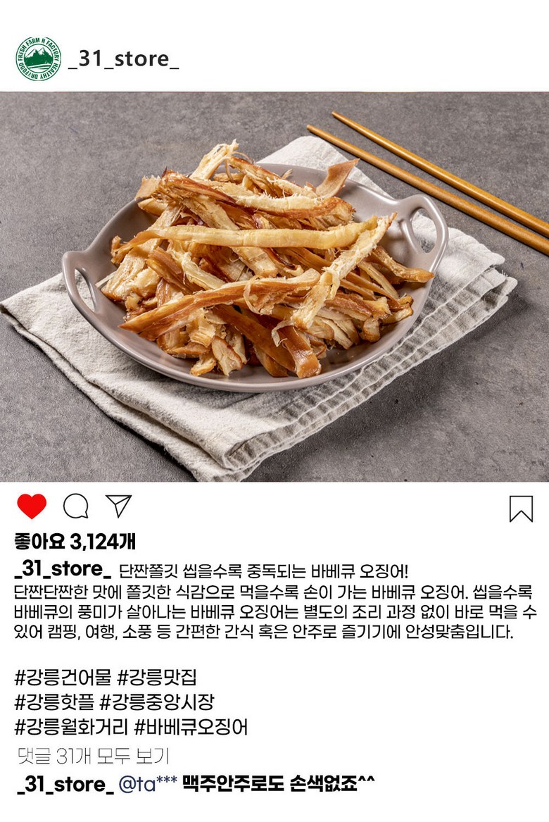 | 제품명 | 31건어물 바베큐 오징어 | 식품의 유형 | 조미 건어포류 |