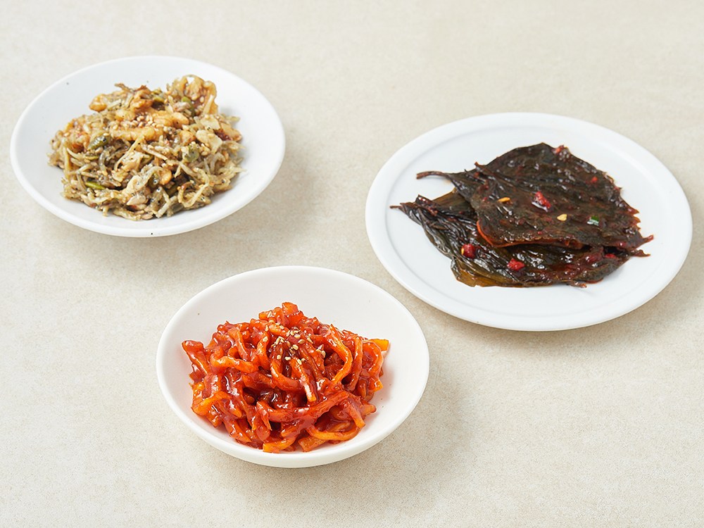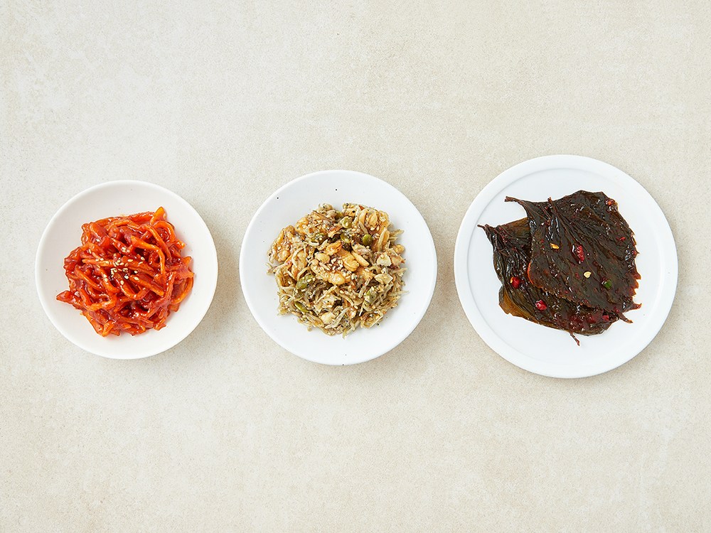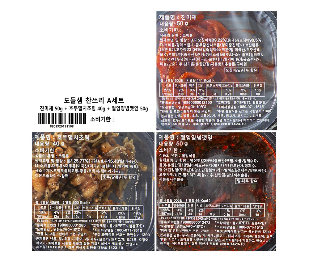 - 구성품: 진미채 50g + 호두멸치조림 40g + 절임양념깻잎 50g