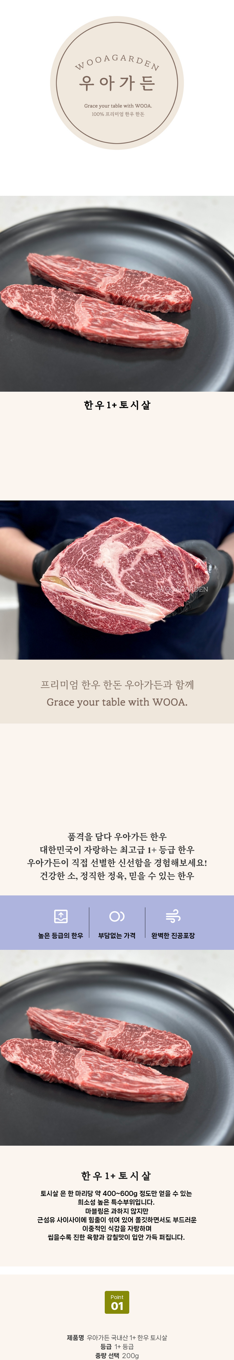 | 품목 또는 명칭 | 품목 또는 명칭:한우 1+ 토시 | 포장단위별 내용물의 용량(중량),수량,크기 | 용량(중량):200g1팩/1팩/가로12.5 세로 20 / 크기:가로12.5 세로 20 / 수량:200g |