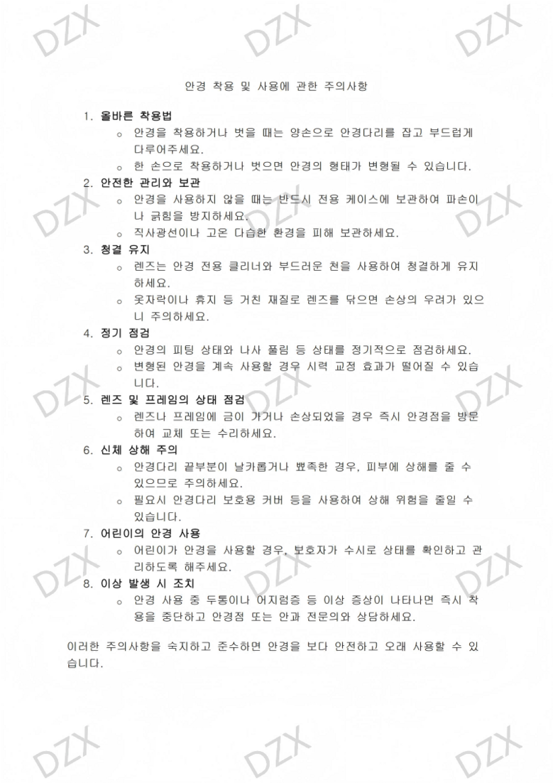 - 렌즈 종류: 변색렌즈(자외선과 온도에 따라 변함)