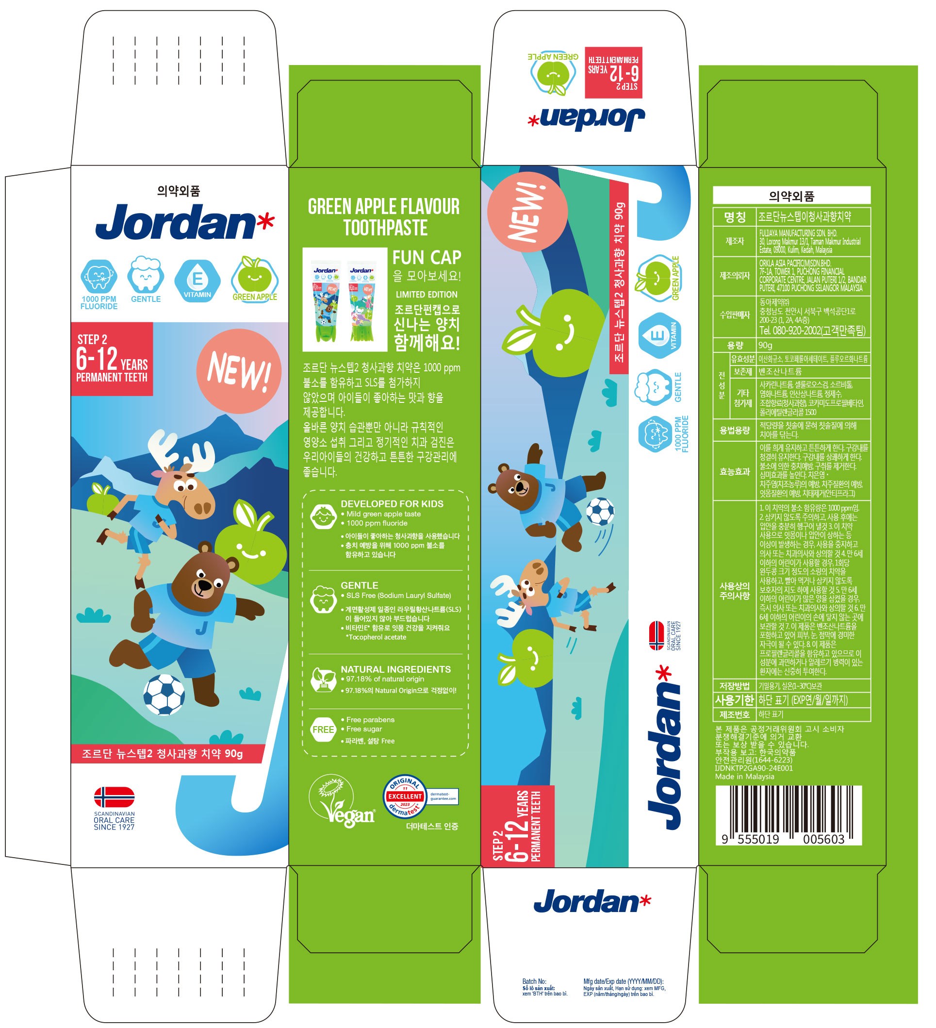 | 품명 및 모델명 | 조르단뉴스텝이청사과향치약 | 인증/허가 사항 | 의약외품 |