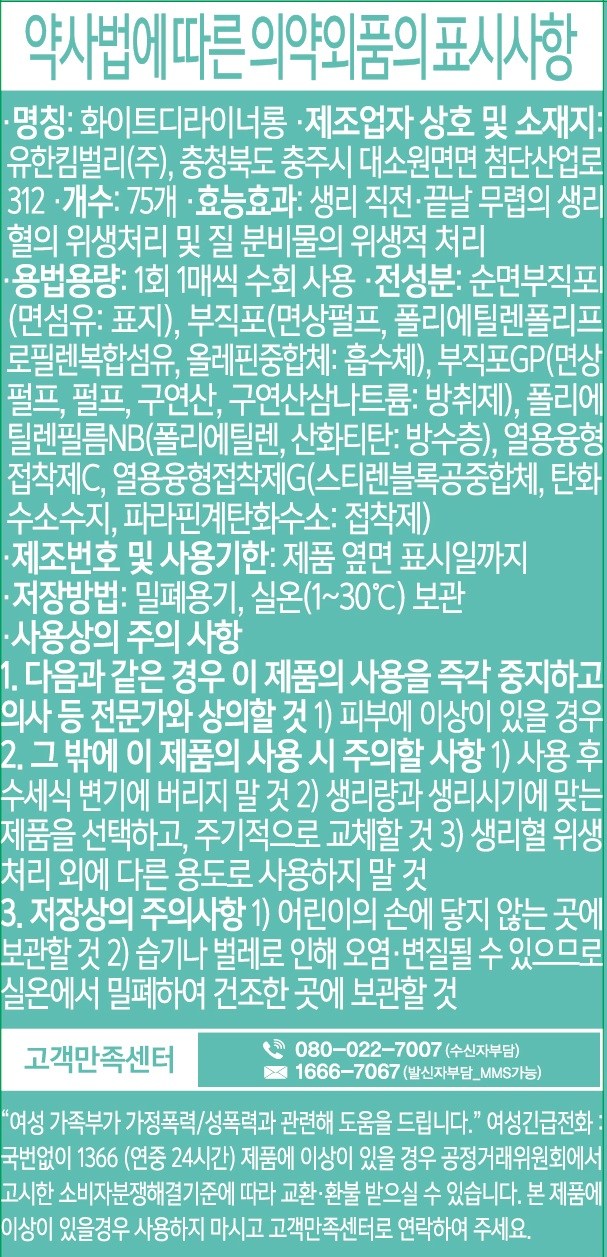 | 제조국(원산지) | 한국 | 제조자(수입자) | 유한킴벌리(주) |
