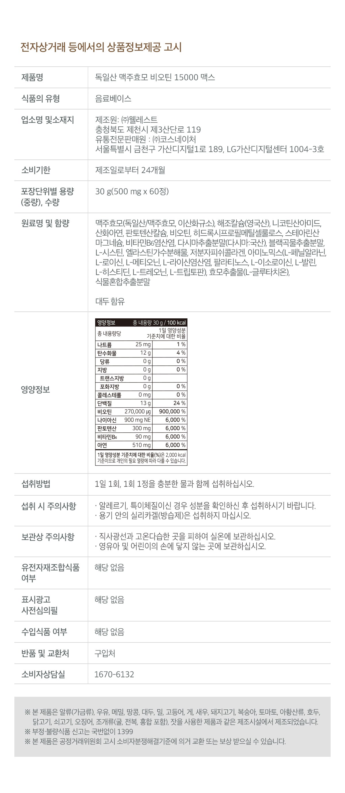 | 생산자 및 소재지 | 컨텐츠 참조 | 제조연월일, 소비기한 또는 품질유지기한 | 소비기한(또는 유통기한) : 2026년 09월 17일 이거나 그 이후인 상품 제조년월일 : 2024년 09월 18일 이후인 제조상품 |