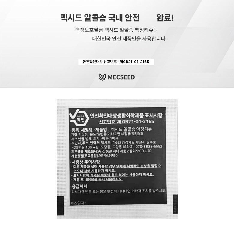 | 제조국(원산지) | 중국 / 알콜솜: 컨텐츠 참조 | 제조자(수입자) | (주)멕시드/(주)멕시드 / 알콜솜: 컨텐츠 참조 |