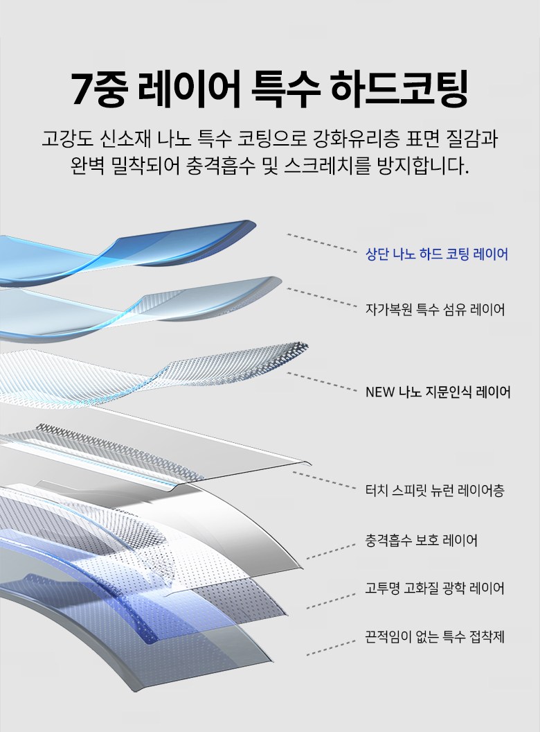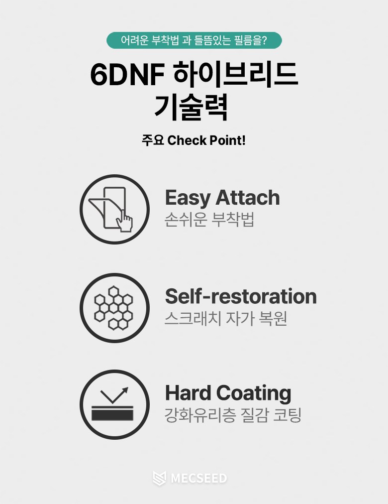 MECSEED 6DNF 풀커버 자가복원 하이브리드 유리하드코팅 강화 휴대폰 액정보호필름 내부 2p + 외부 2p 세트